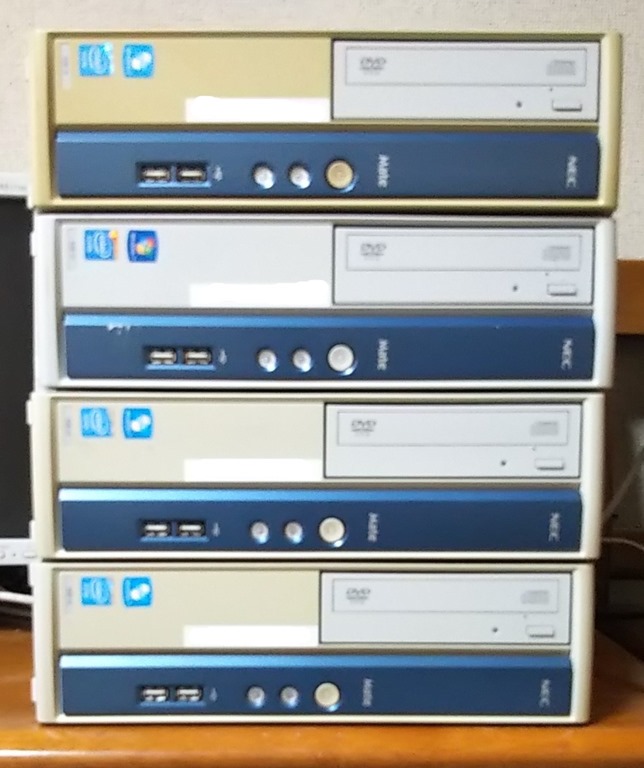 会社の事務用パソコンが更新されました。 廃棄された4台をリユースします。 メモリーが2GBしか内蔵されていませんが、大島先生から2GBのメモリーをいただきましたので、4GB機2台と2GB機を1台にし1台をパーツ取りにしました。 更にWindows7をWindows10にアップデートしました。 この3台はセット教習で使う予定です。