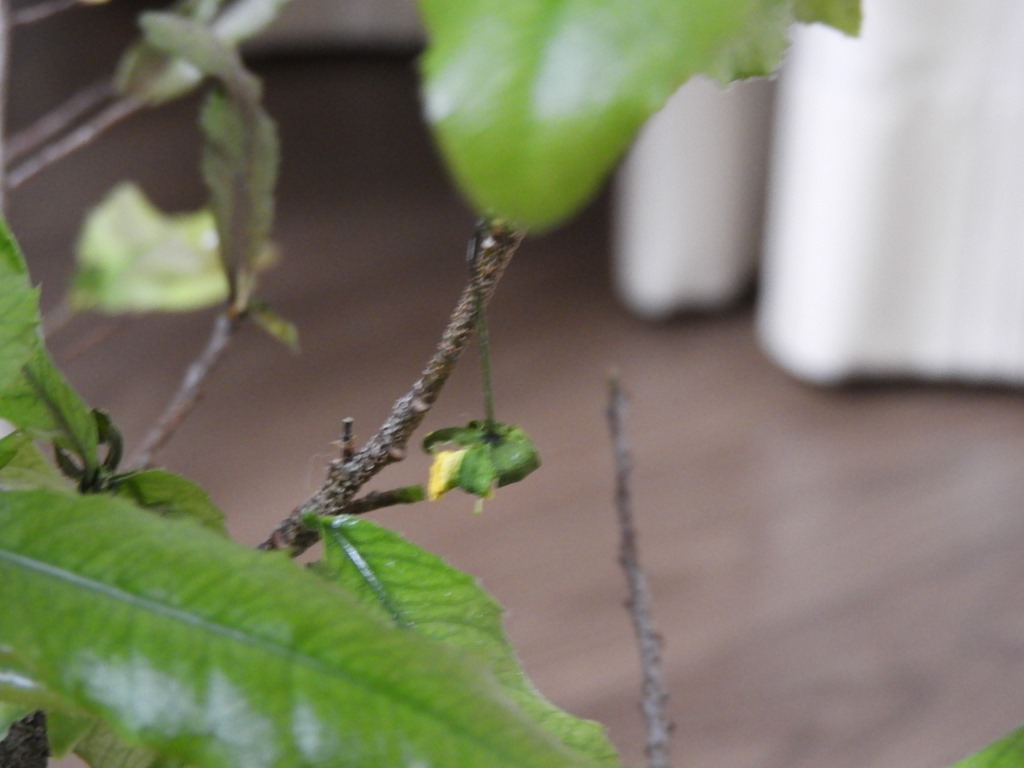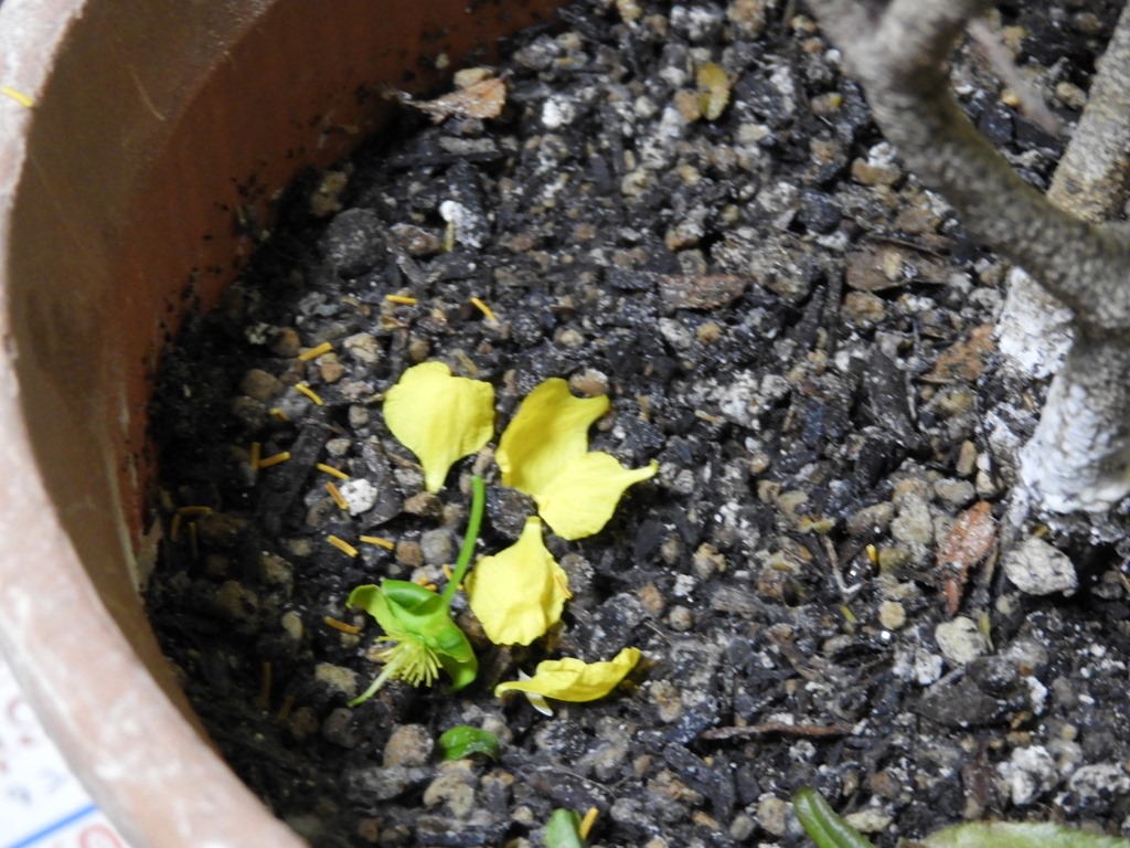 数年間花が咲かなかった「ミッキーマウスツリー」の花が咲いたという記事を前回書きましたが、花弁が散った後に顎が赤くなって黒い実がつくはずなのですが・・・その前に落ちてしまいます。