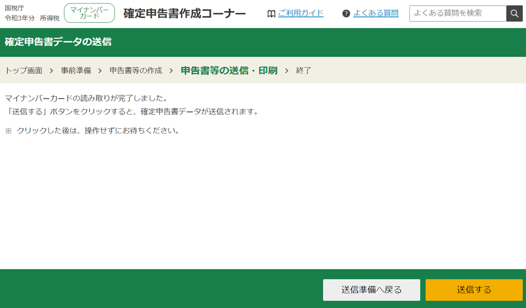 今年は「マイナンバーカード」を使用して「e-tax」で行いました。
