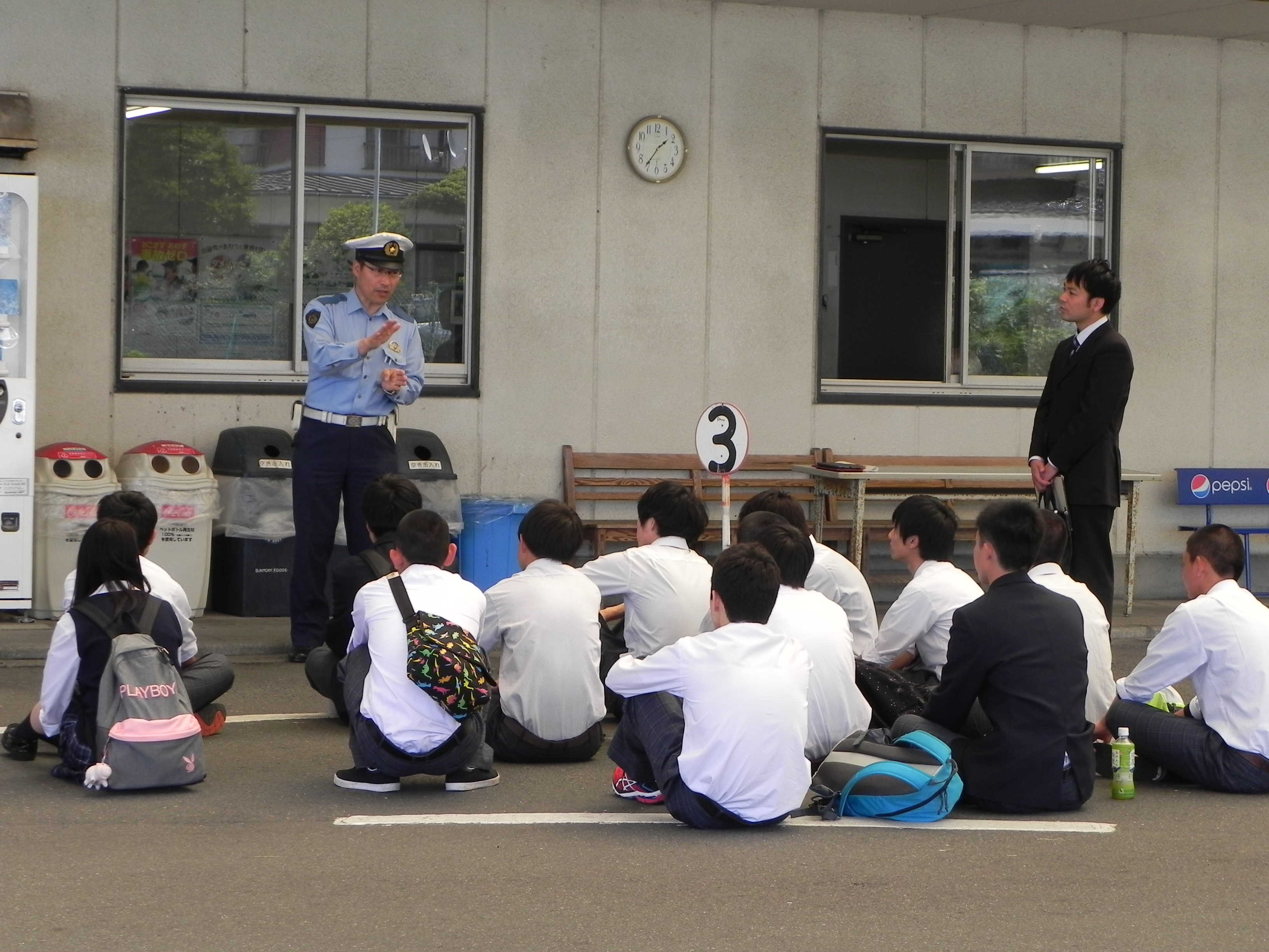 本日、羽室台高校の自転車通学生を対象とした交通安全教室が行われました。