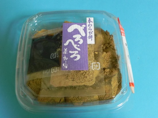 和菓子処 茶郎の本わらび餅「べろべろ」です。 スーパーで売っているジャガイモ澱粉等を使用したわらび餅風ではなく、本わらびですから少々値が張りますけど・・・