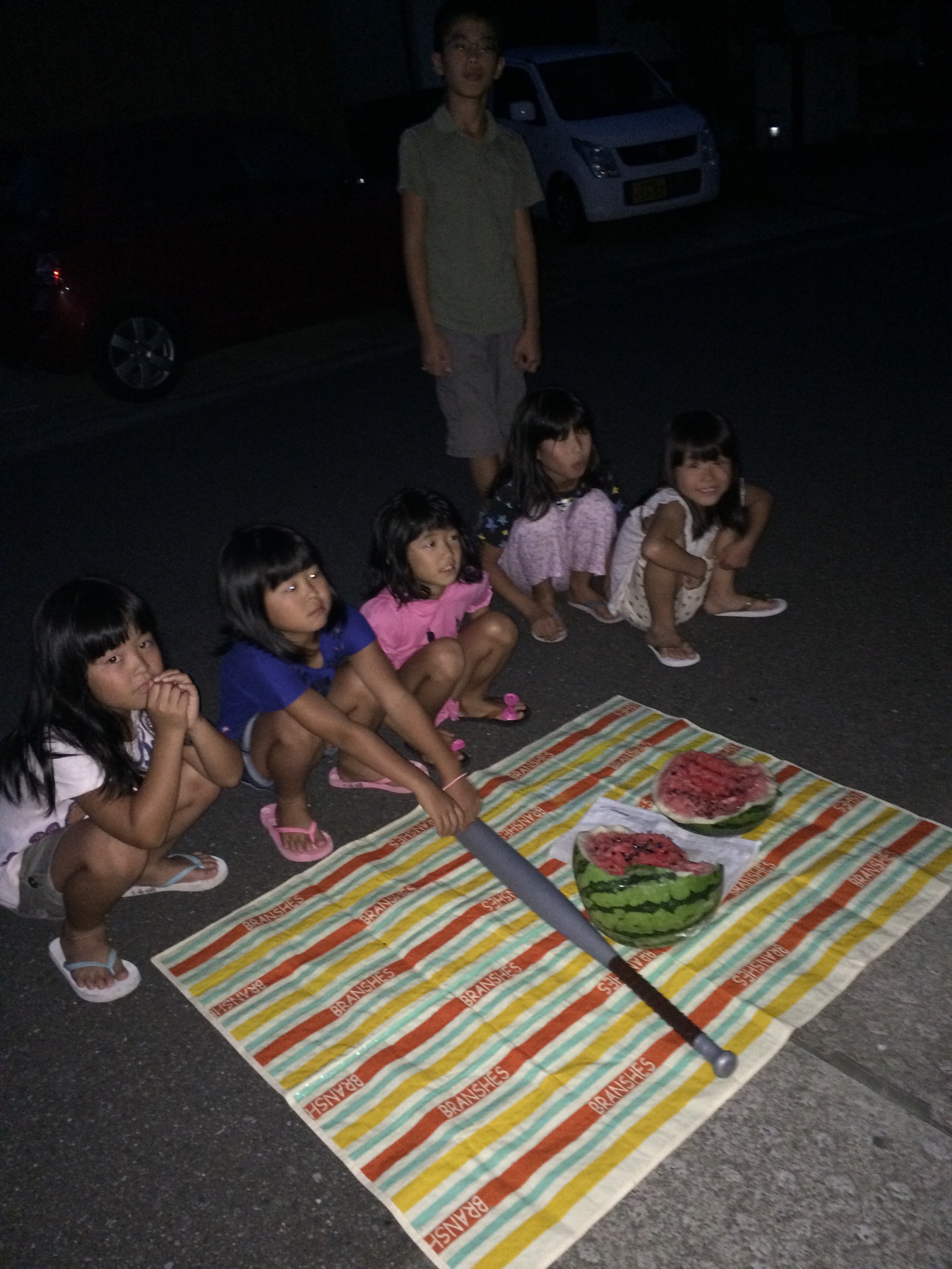 今年も無事に大きく育ってくれたスイカを近所の子供達と叩き割りました;^_^A