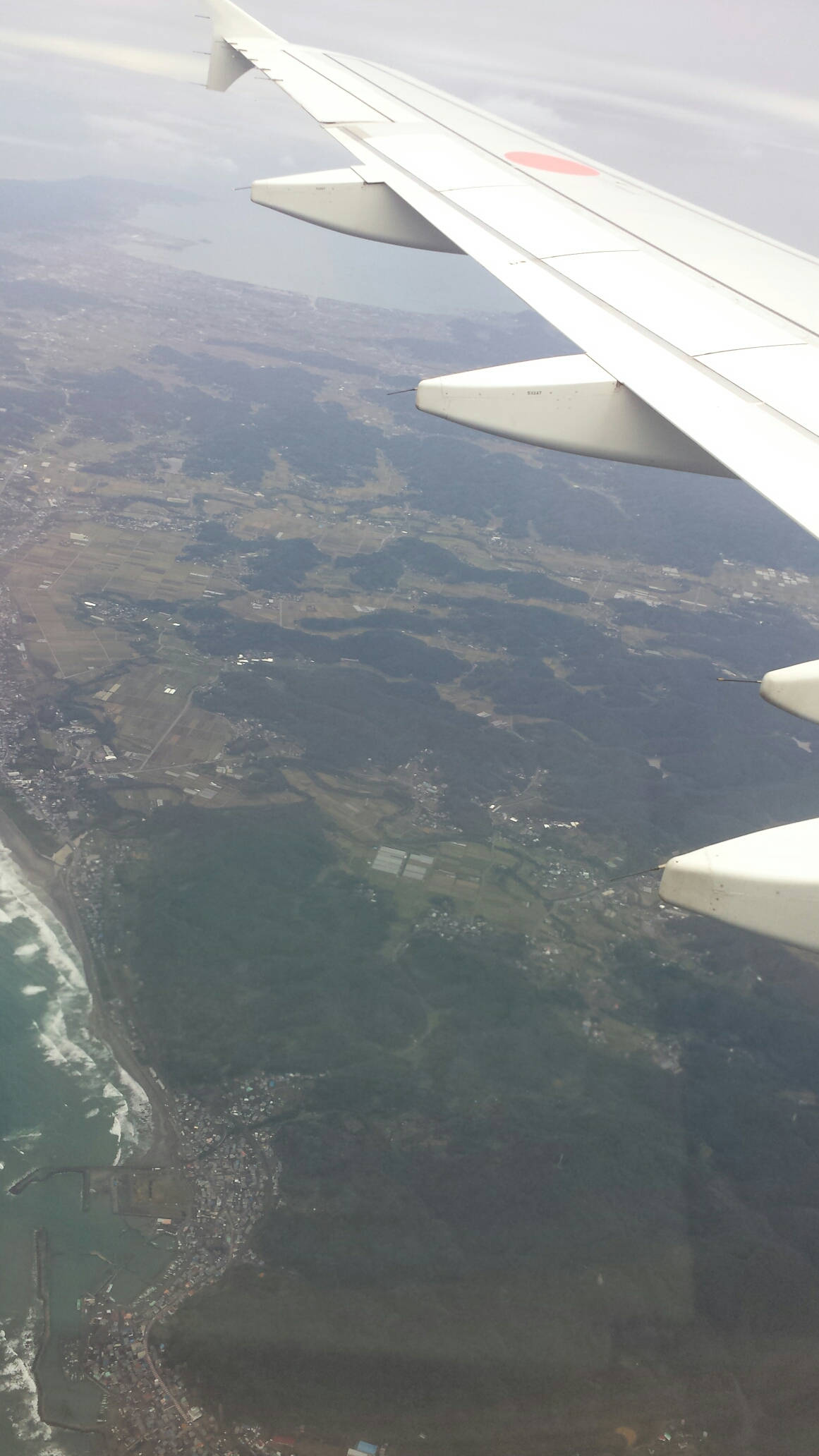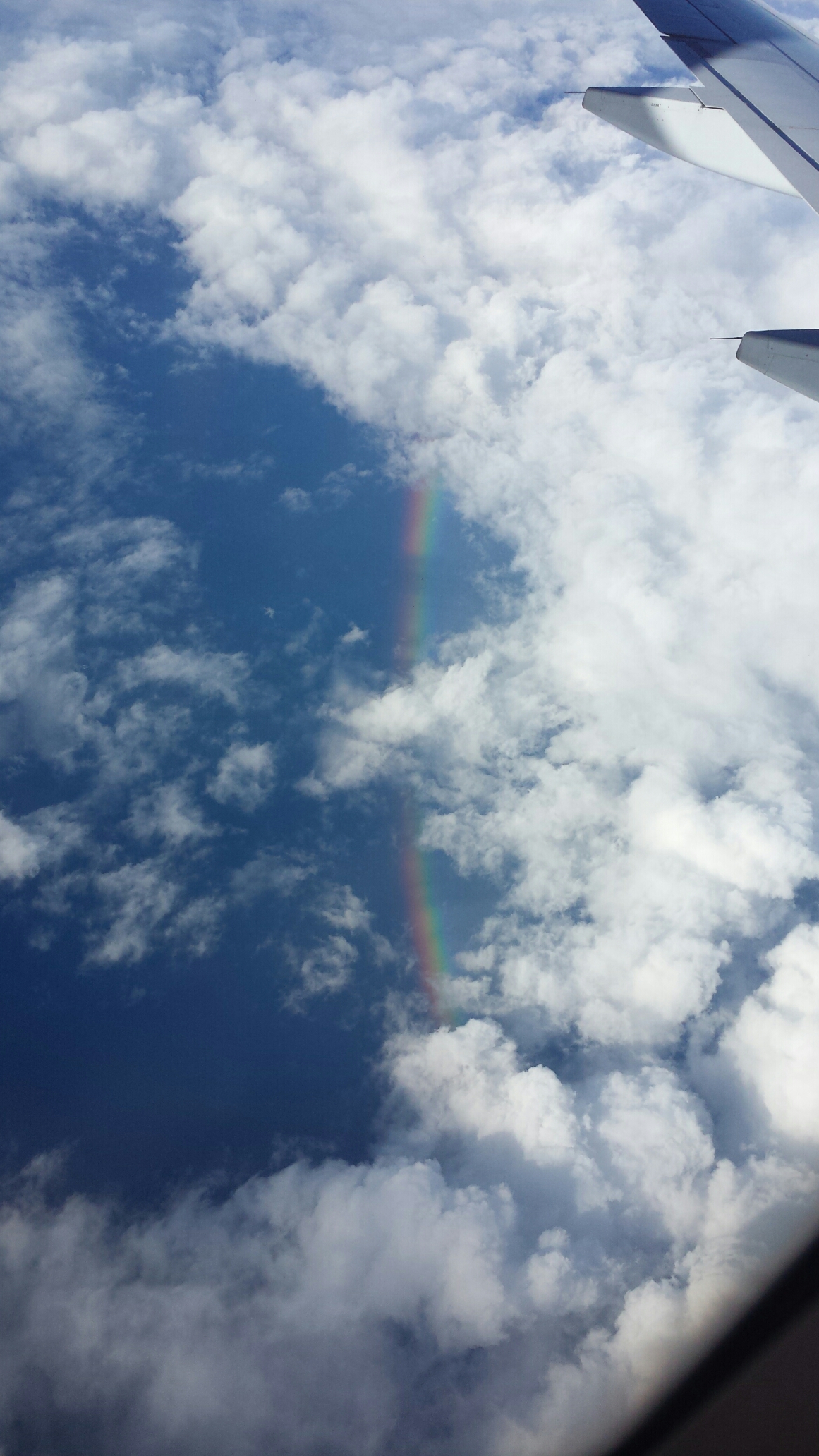 飛行機に風があたる衝撃が 車で路面の悪い道を走っている衝撃ににてるなぁーと思っていたら 空の上から下に 虹が見えました(’-’*)♪