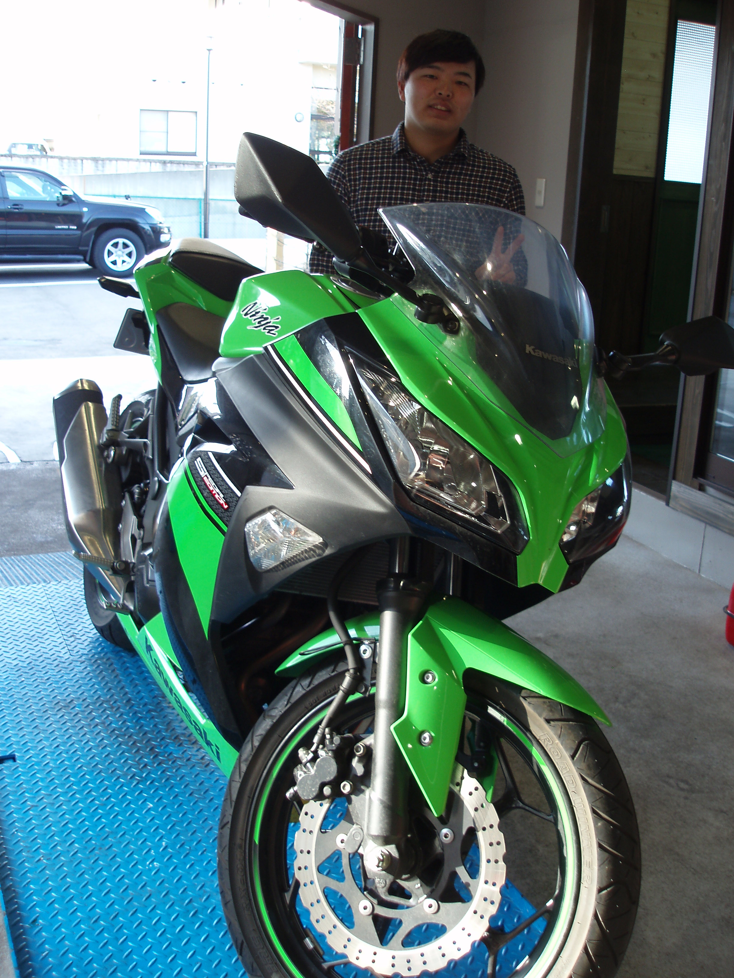 私の担当のHくん、カワサキのNinja400