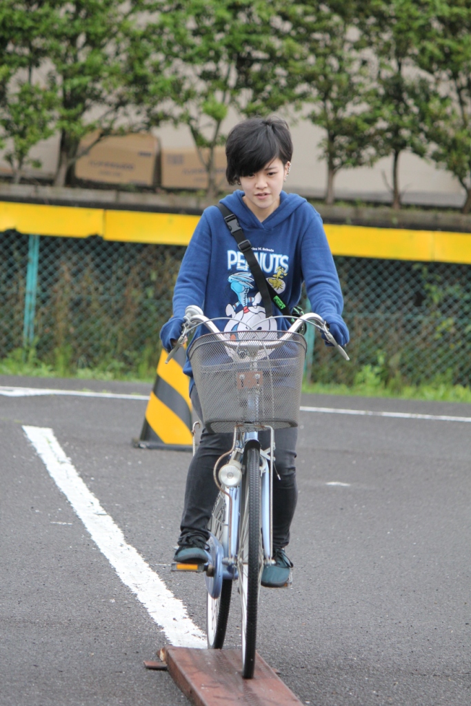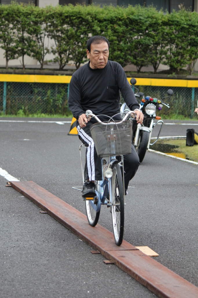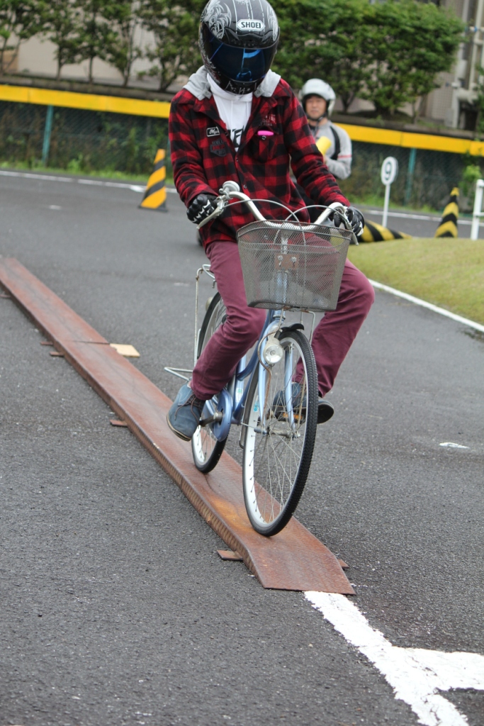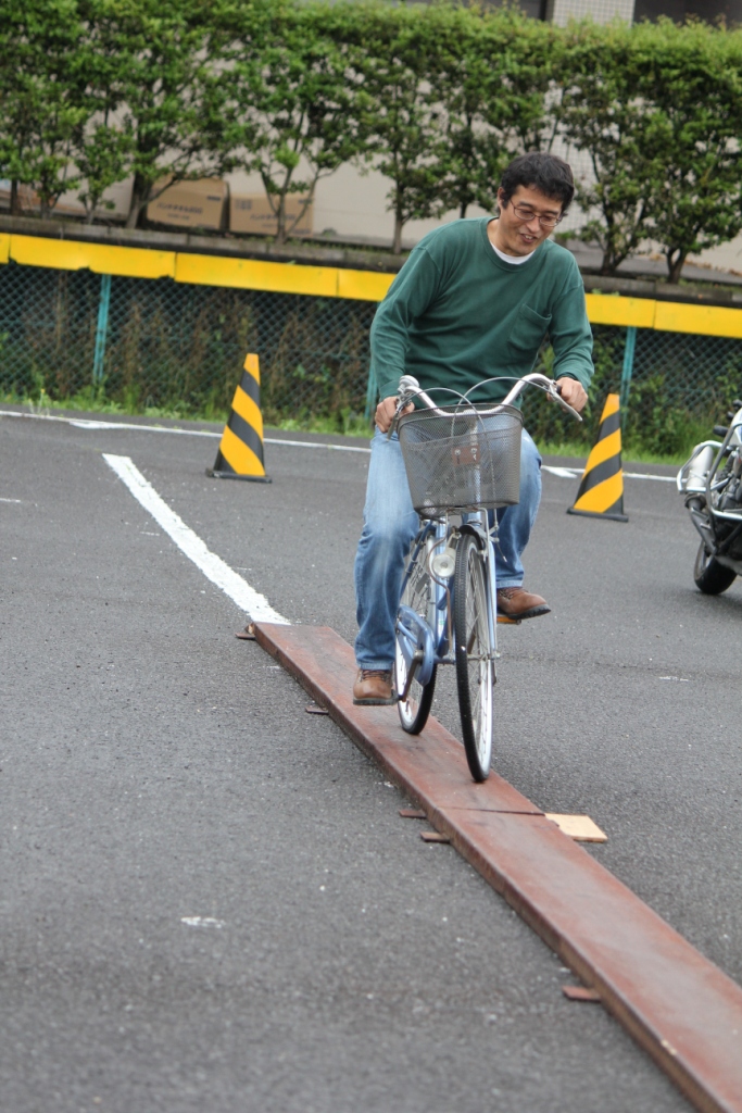 自転車での一本橋は、こぐ足でバランスが変化するし、駆動の伝達とバランスを取るのがむずかしいですね~